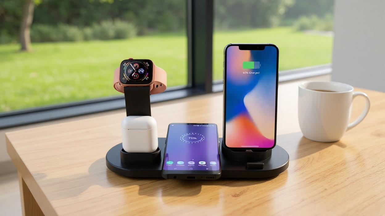 3-i-1 Trådlös Snabbladdare med Stativ – Dual Coil Mobilhållare