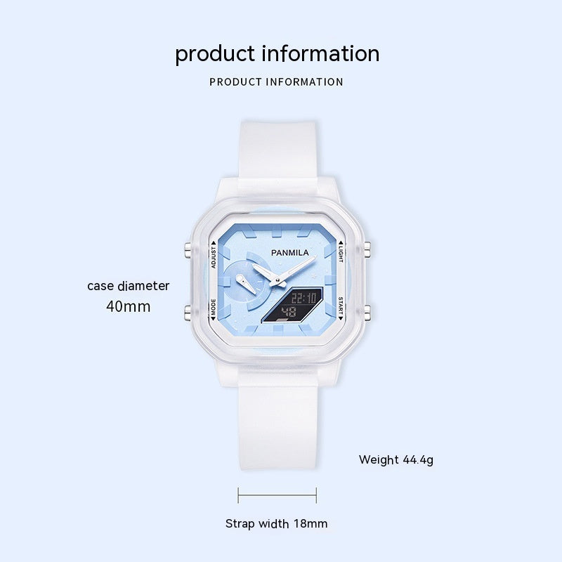En praktisk och tålig elektronisk klocka med sportig design, perfekt för studenter och vardagsbruk. Den ljusande displayen gör det enkelt att se tiden även i mörker, och det mjuka silikonarmbandet ger en bekväm passform hela dagen.